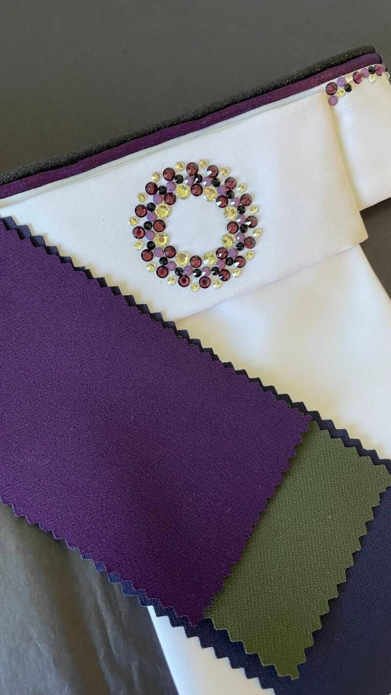 Misschien heb je al wat moois gezien, maar wil je net een ander detail of een andere kleur. Of je wilt iets totaal anders. Omdat onze plastrons handwerk zijn is alles mogelijk! Om je eigen plastron te kunnen maken, vertel je ons wat je wilt.